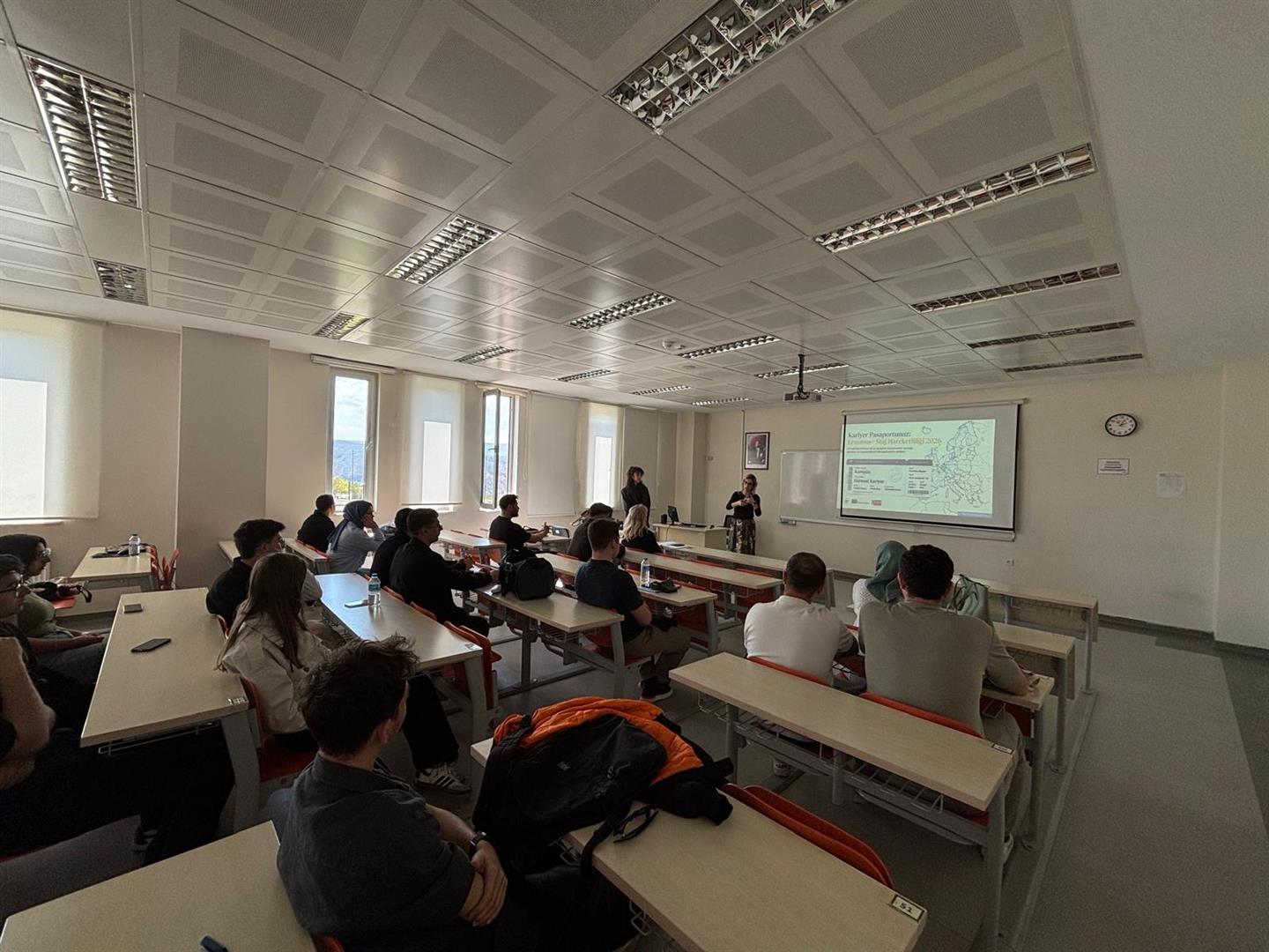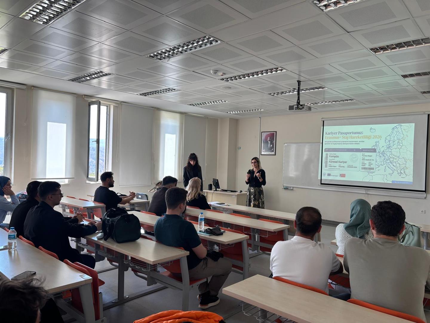 ERASMUS+ PROGRAMI KAPSAMINDA YÜRÜTÜLEN STAJ HAREKETLİLİĞİ HAKKINDA, ULUSLARARASI ÖĞRENCİ KOORDİNATÖRÜ YARDIMCISI ÖĞR. GÖR. DR. ESRA GÜNEY TARAFINDAN 28 NİSAN 2026 TARİHİNDE SAAT 14.00’TE M11103 NO’LU DERSLİKTE; ÖĞRENCİLERİMİZ, İDARİ PERSONELİMİZ VE AKADEMİSYENLERİMİZİN KATILIMIYLA BİLGİLENDİRME TOPLANTISI GERÇEKLEŞTİRİLMİŞTİR.
