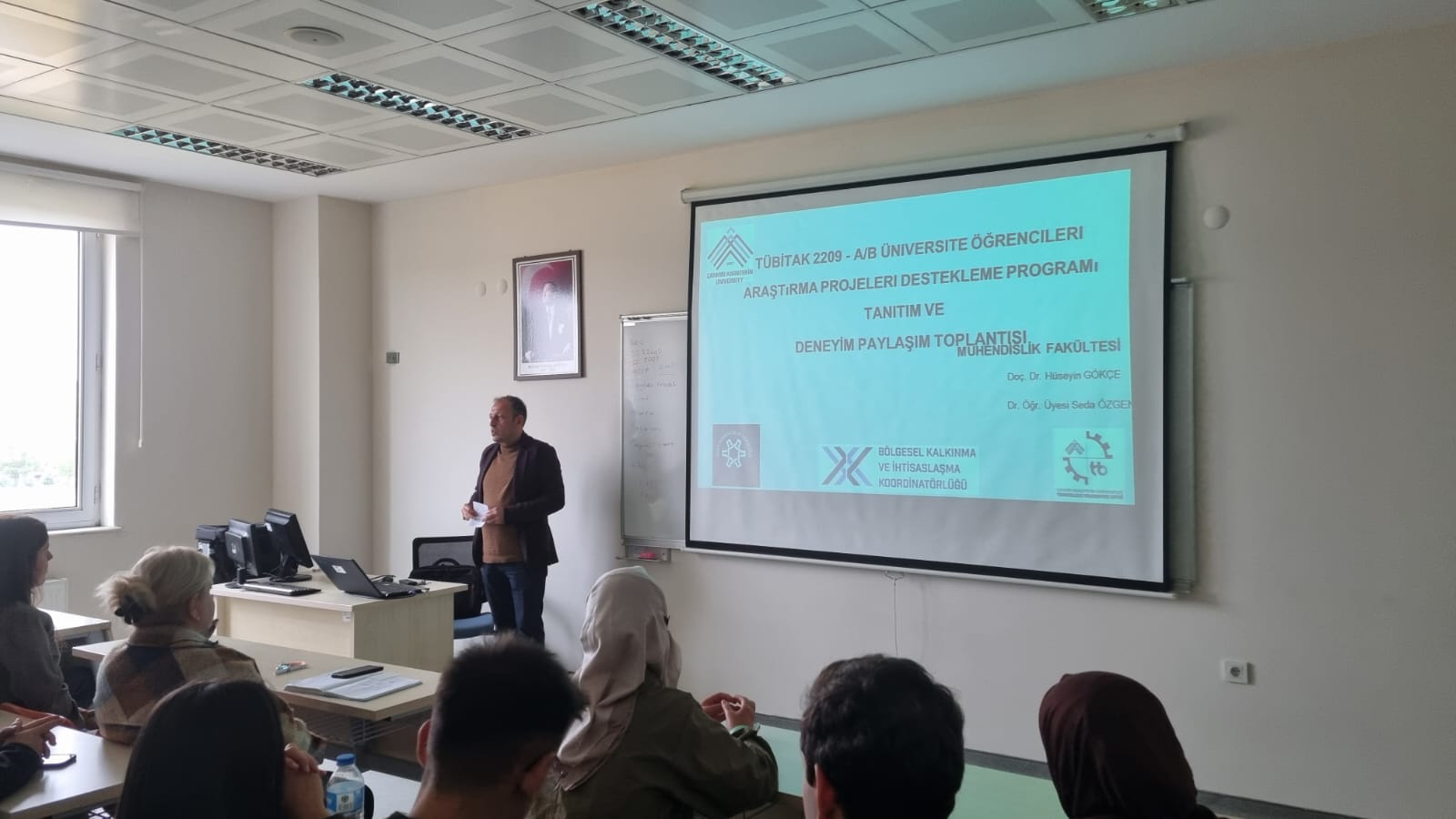 FAKÜLTEMİZDE ÖĞRETİM ÜYELERİMIZ DOÇ. DR. HÜSEYİN GÖKÇE VE DR. ÖĞR. ÜYESİ SEDA ÖZGEN TARAFINDAN "TÜBİTAK 2209A/B ÜNİVERSİTE ÖĞRENCİLERİ ARAŞTIRMA PROJELERİ DESTEKLEME PROGRAMI" İÇİN TANITIM VE DENEYİM PAYLAŞIM TOPLANTISI 22 EKİM 2025 TARİHİNDE SAAT 10:30`DA GERÇEKLEŞTİRİLDİ.