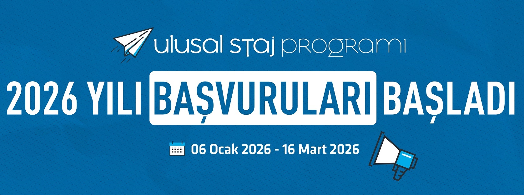 PROGRAM BAŞVURULARI 6 OCAK - 16 MART 2026 TARİHLERİ ARASINDA ULUSAL STAJ PROGRAMI ADRESİ ÜZERİNDEN ALINACAKTIR.